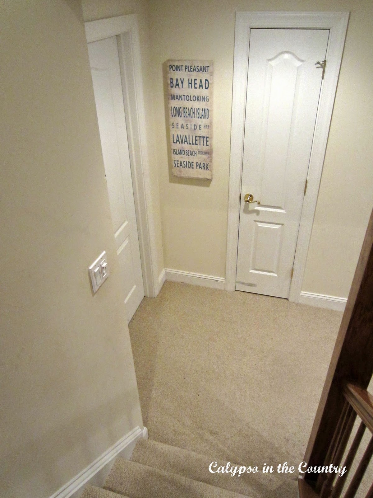 How perfect is that! And since I kind of have a travel/beach theme going on down there anyway, it fits right in… (Don’t ask me why the walls look so discolored in this picture! Maybe because I have NO natural light down there and I used my cheapo camera!)