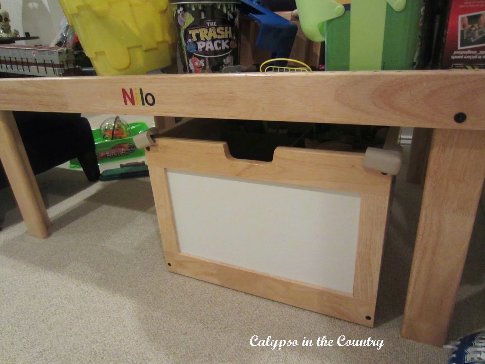 I think I will try to sell this train table on Craigslist or something. It has just become the dumping ground for all their junk! I am planning on buying a square game table with chairs to put in its place and I still have to find a new TV stand for the larger TV….since I’ve been talking about that for several months!