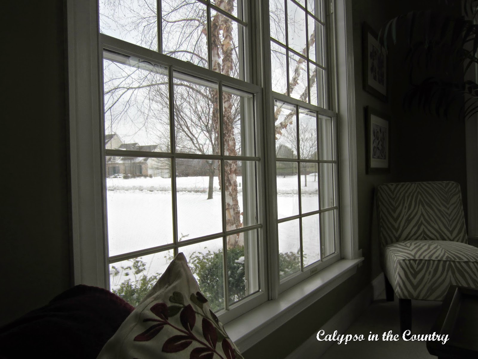 And here we are sitting back in my spot. As much as I love the look of the pretty snow out there, I am looking forward to a view of green grass and leaves!