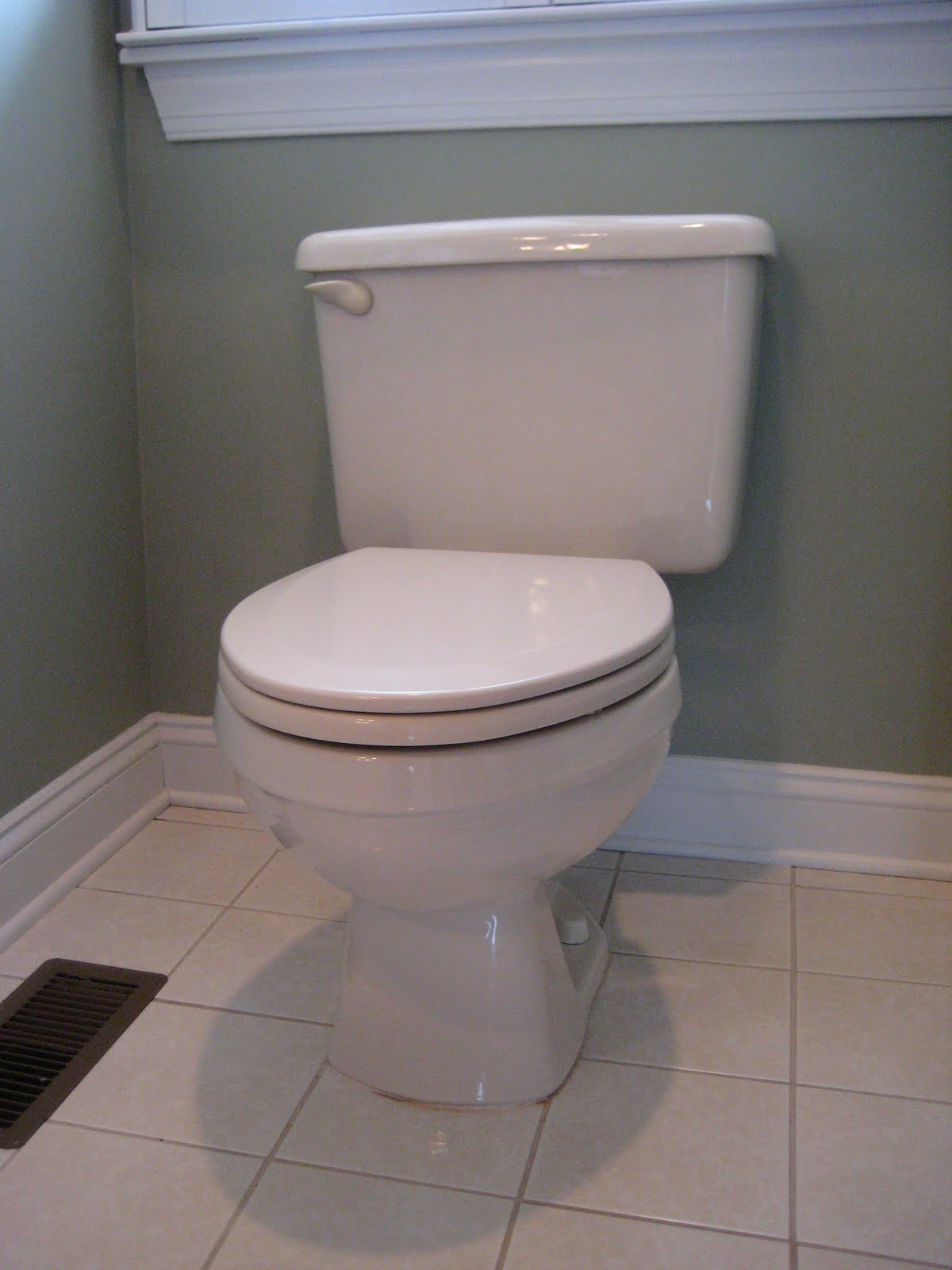 As the new toilet went in, I realized I needed to paint behind it. Just another project…By the way, the paint color in here is Benjamin Moore Saybrook Sage in case you were wondering…