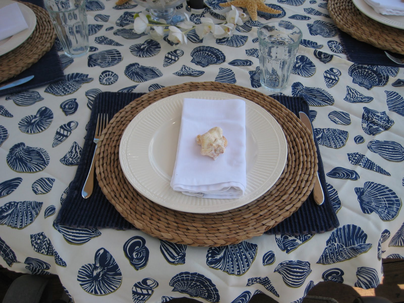 I am just loving those woven placemats. I've been trying to find some, but so far I haven't found any that fit my budget. Yours look just beautiful on your beach themed tablescape!