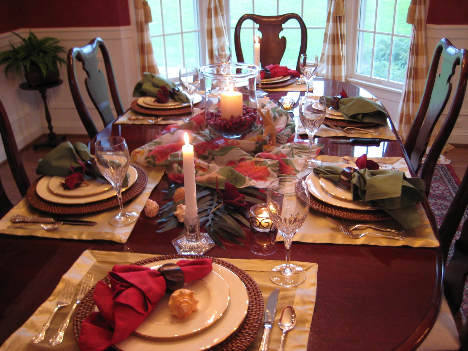 What a great twist on the Holidays – Caribbean Style! I love the sarong – it really compliments the table. Thanks for your nice comments, I recently picked up the Johnson Bros. holiday plates. They are quickly becoming one of my favorites too! ~Susie