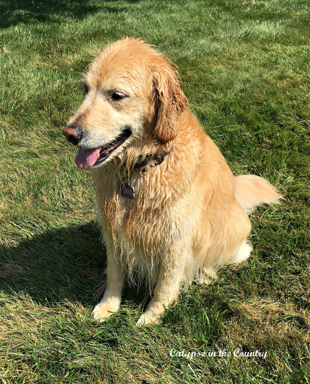 Poor Rosie had to resort to sprinkler chasing to stay cool! Actually, it’s one of her favorite activities so we let her do it on those really hot days. Of course, we pay later when our house smells like wet-dog! Ugh!