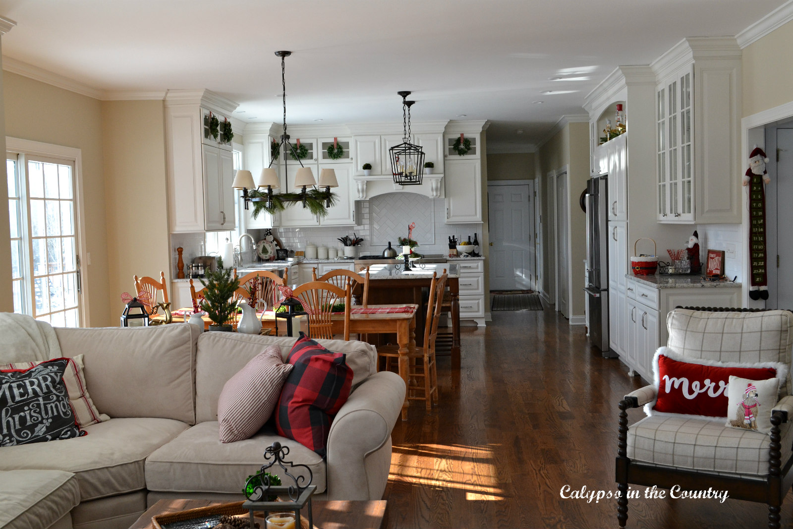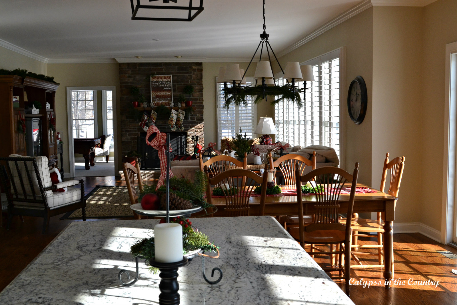 Here is the view into the family room. My kitchen table is set up for everyday in this photo but I recently set a Festive Table Setting that we ended up recreating for Christmas breakfast.