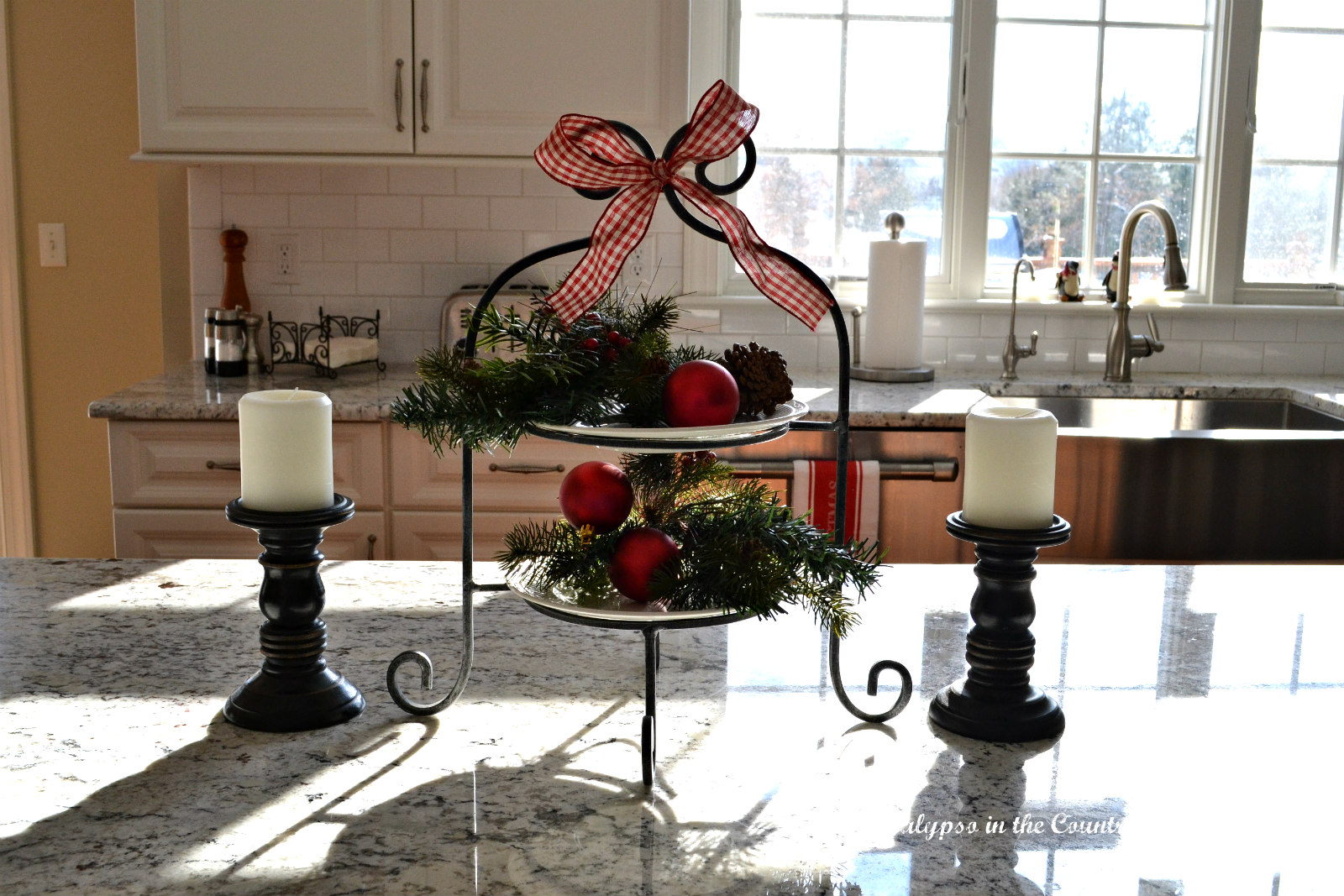 When decorating for Christmas, I always like to use my tiered tray on the island. It doesn’t take up too much space and adds some color.