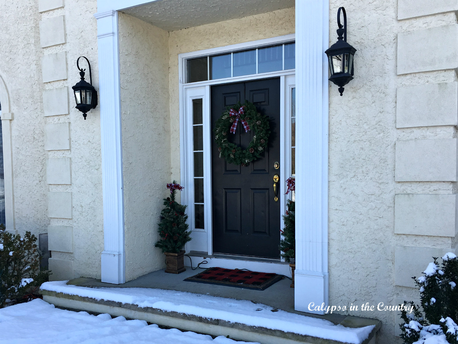 This year, I also added wreaths and a bow to the lanterns by my garage.