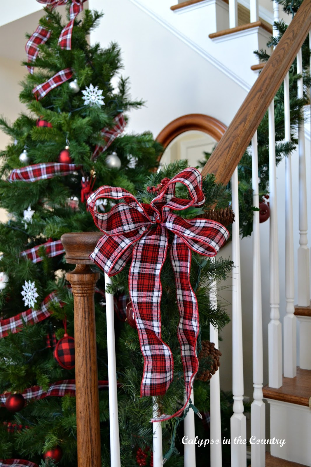 As you can see, I used different ribbon for my bows this year. I went with red and white plaid to replace the red and black houndstooth I had in there last year.