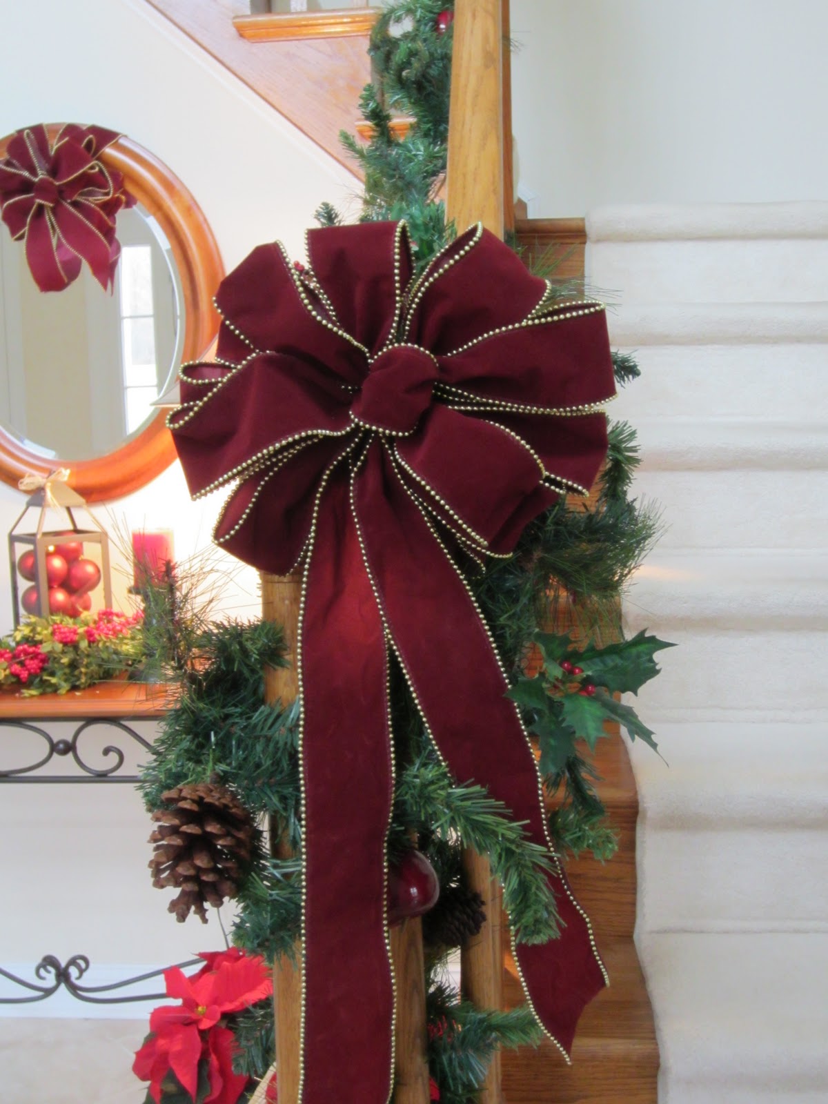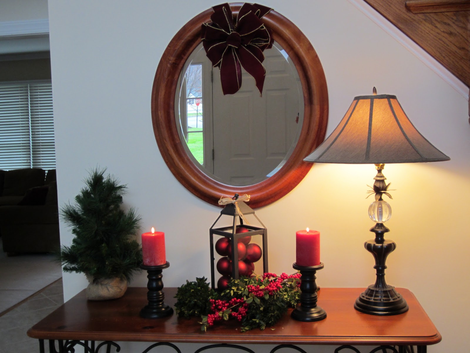 Also, I carried the bows over to the mirror. Though, the red on my table is a little brighter.