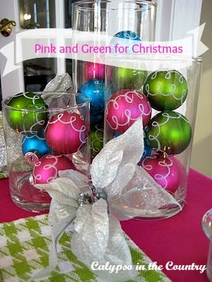 A wonderful non-traditional Christmas table — I love pink and green – you could make this work for any time of year. Pretty!