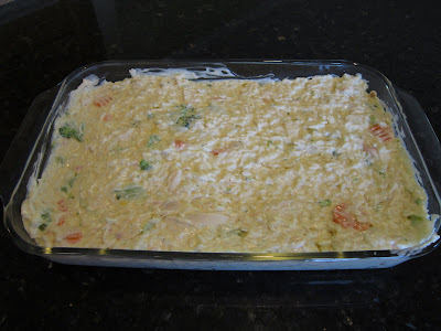 Pre-cook chicken, rice and vegetables. Mix soup, mayo and lemon juice. Add chicken, rice and cooked vegetables. Sprinkle on almonds if you want and bake at 350 degrees for about 30 minutes or until it is hot all the way through.