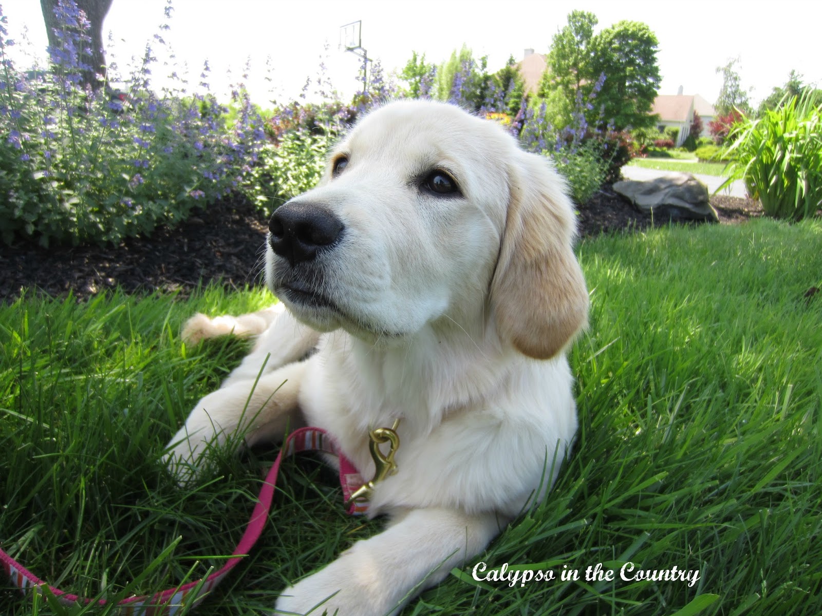Beautiful yard & flowers! Rosie looks so pretty, what a nice puppy pic!!