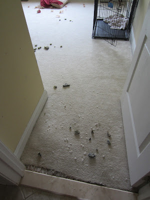 This was all the furniture left when we started using the room for the dog. Anyway, as you can see, it was a colorful room. The walls were painted Philadelphia Cream by Benjamin Moore. And yes, I had white carpeting… (obviously, not the best choice for a kids’ playroom – or a dog!)