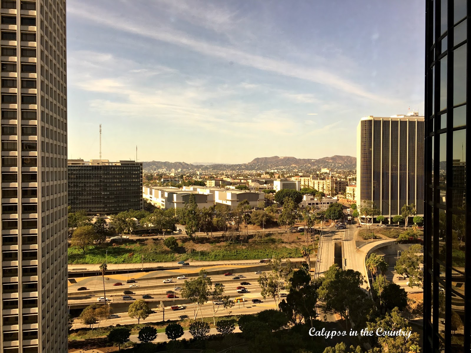 This is the view from our hotel room at the Westin Bonaventure in downtown LA. If you try really hard, you can see the Hollywood sign on top of that mountain in the distance.