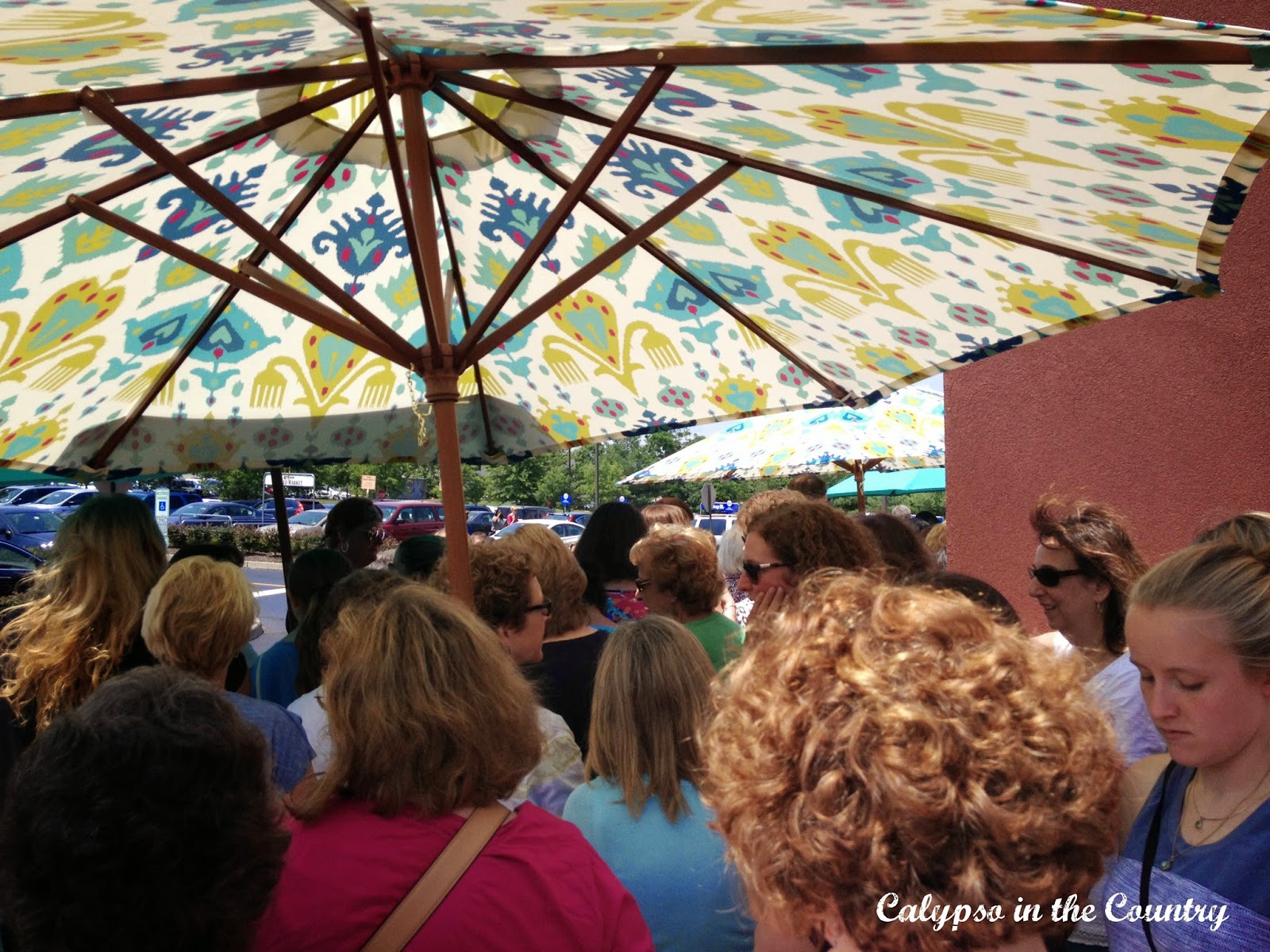 Luckily, the store set up a bunch of pretty umbrellas which provided some sun coverage. Good thing because it was very hot and humid that day! World Market did a great job of keeping everyone hydrated with dispensers of water, lemon water and cucumber water. During our time in line, we stood near a friendly crowd of people and everyone was excited to see the Brothers. Thankfully, the line moved at 25 people at a time so overall the wait wasn’t too dreadful.