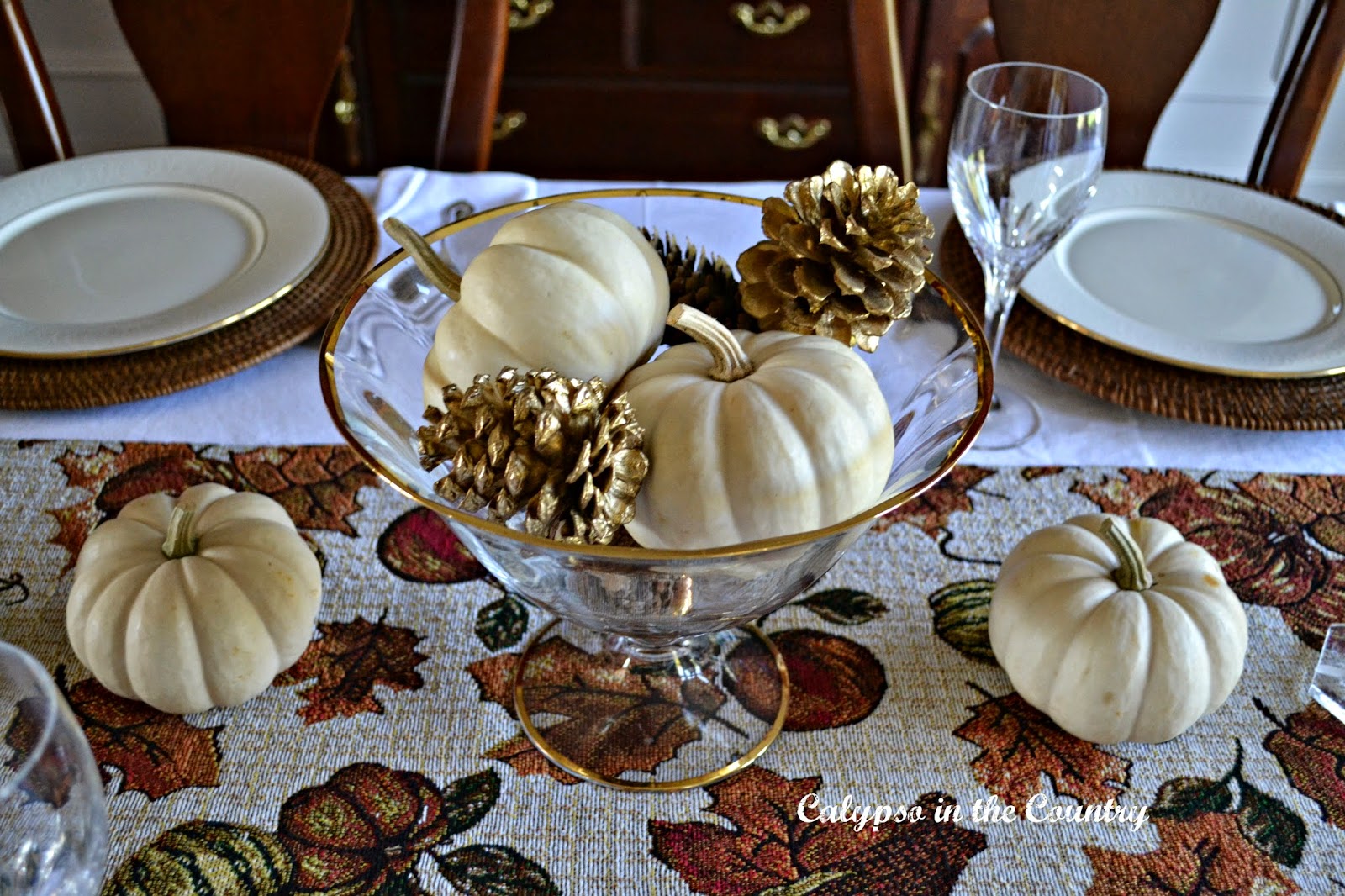 Thanksgiving Table Setting with White Pumpkins