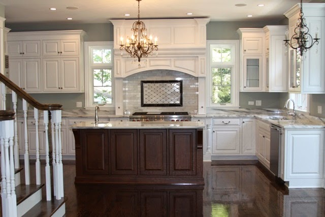 Like I said, the cabinets will be White Dove (but not glazed like the above picture) the island will be stained and the floors will be wood (but a little lighter than the floors above.)