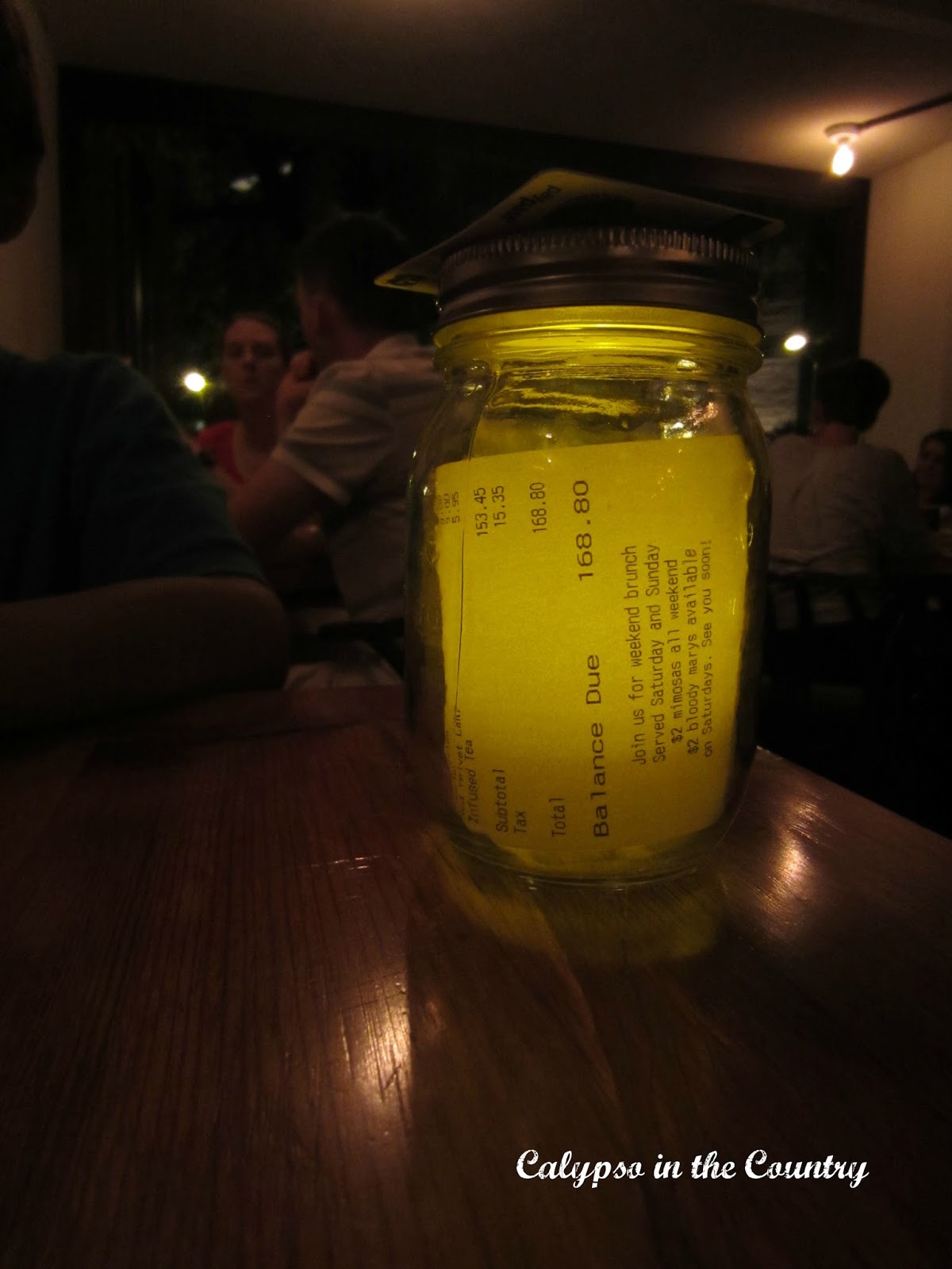 The bill even arrived in a glowing mason jar…adorable. The service was great and the place had a cheerful vibe to it. Plus the kids loved it!