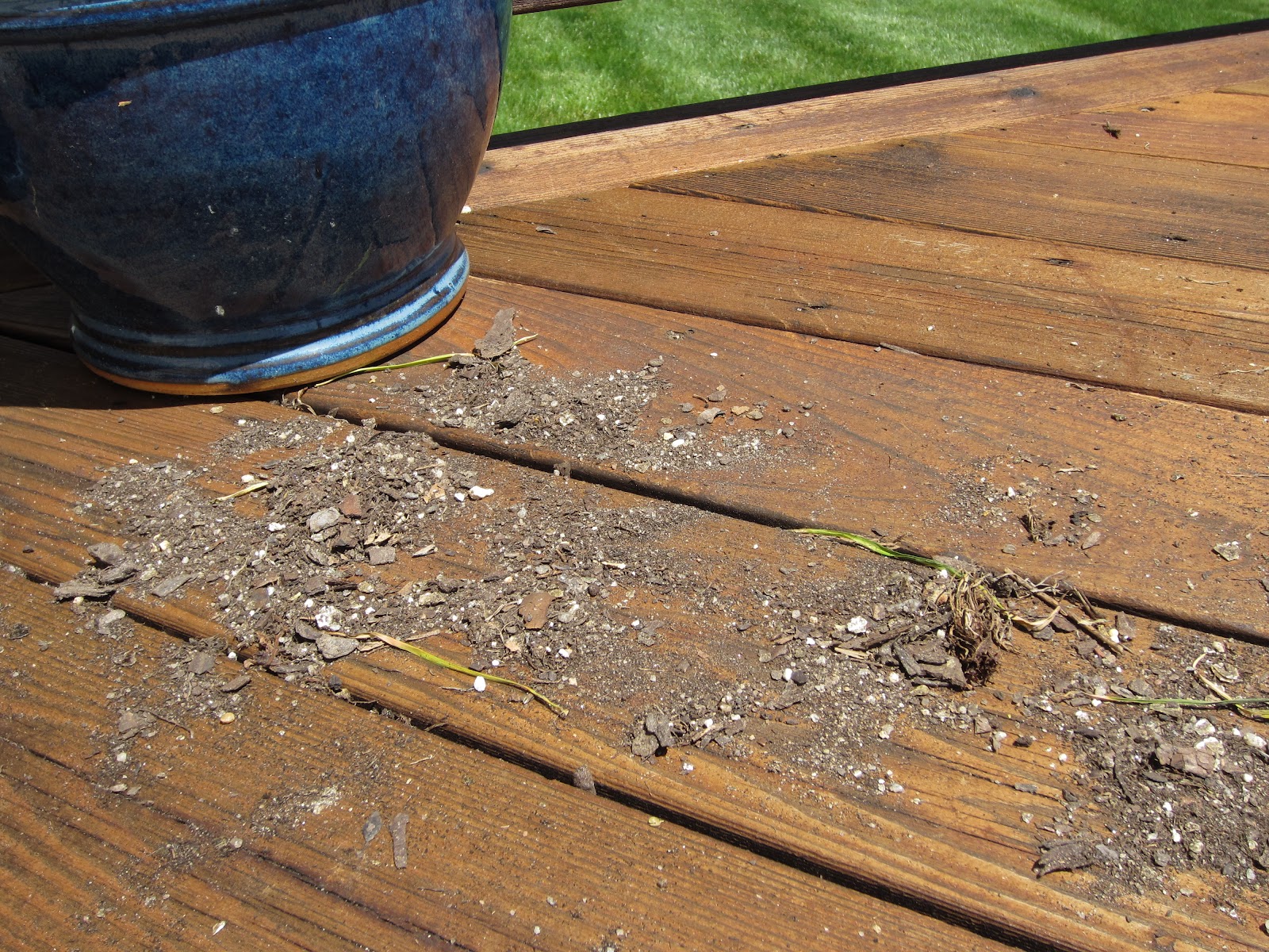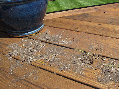 Awww, but look at that face!!!!I put a pot with just dirt in it on our deck. We've already had many discussions with Ike about staying out of it. I'm slightly afraid to put flowers in it!