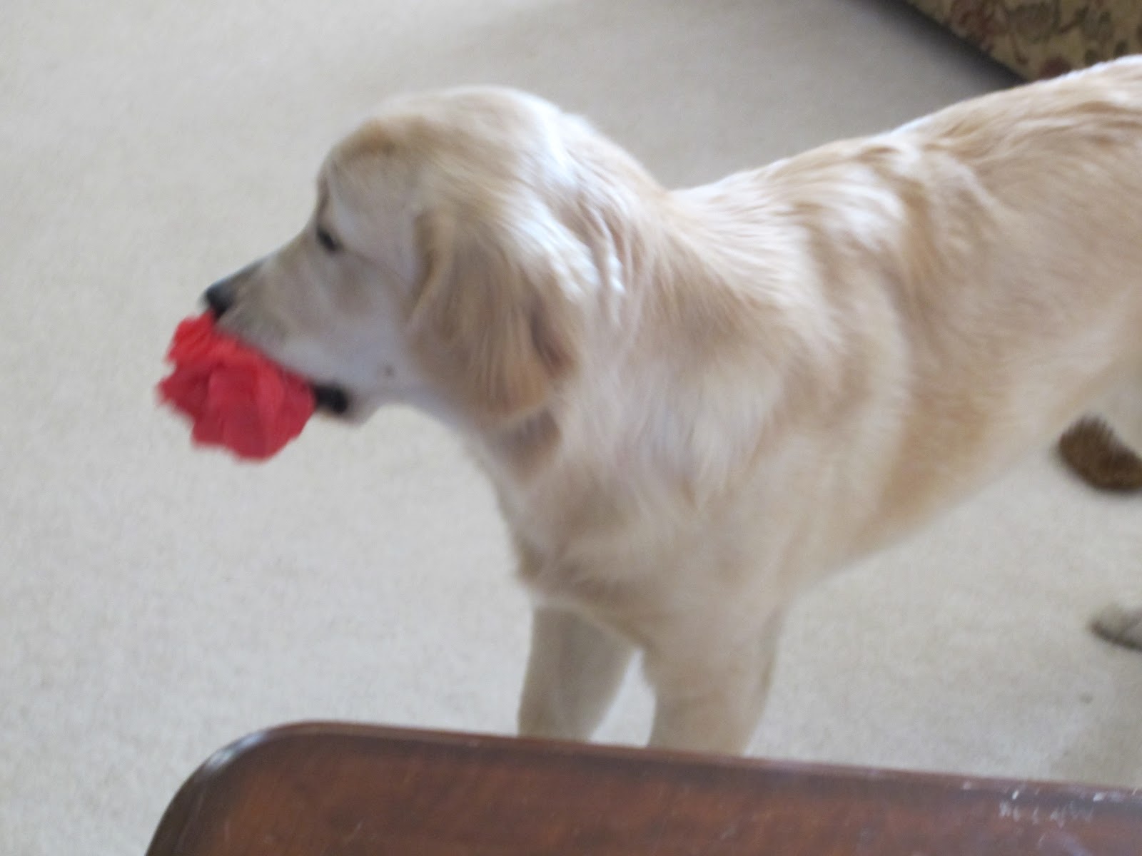 She's so stinking cute! Ike is an excellent present wrapper. Lucky for us he is only interested in shredding and not eating!