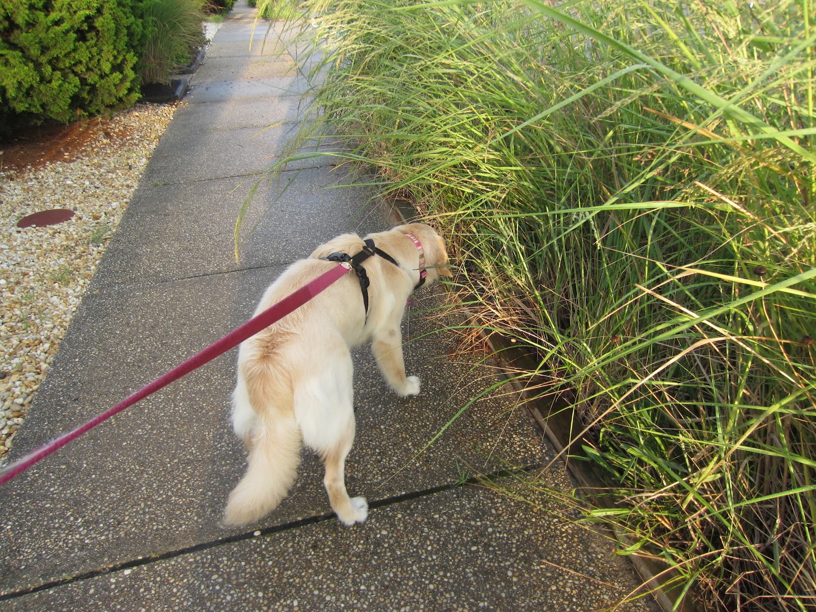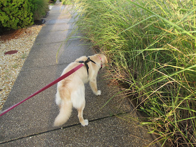 Aw, she's such a cutie! Our Nala took a while to learn to walk properly too, all the smells were far too enticing for her and she'd always lunge at them! We used a halti head collar for about 6 months which gave us much more control and have recently put her back in her collar only for walks and she's great now 🙂 xo K
