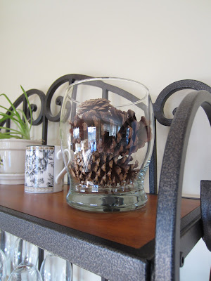 Your shelves are arranged so nicely. I really like the addtion of the pinecones to add a little natural element.